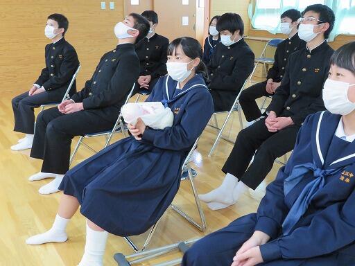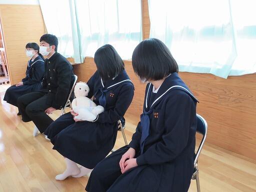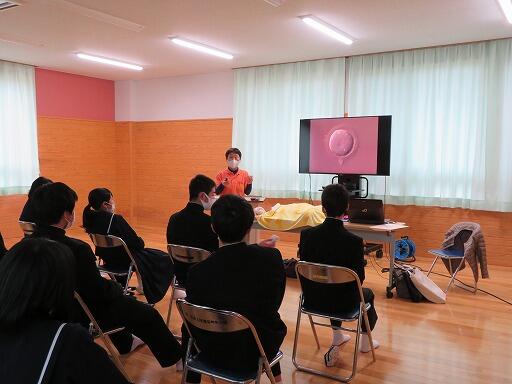 3年生性教育の授業が行われました。か母ちゃっ子クラブ 助産師 宮原様を講師にお願いして、赤ちゃんが無事生まれることの大変さを学びました。生徒の皆さん、あと10年後には、お父さんお母さんになっている