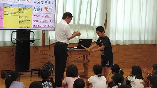 97名の児童生徒たちが無事に終業式を迎えられるのも、保護者・地域の皆様方のご協力があってこそのことです。これまでのご協力に感謝申し上げますと共に、15日(水)から始まる2学期もどうぞよろしくお願いします。