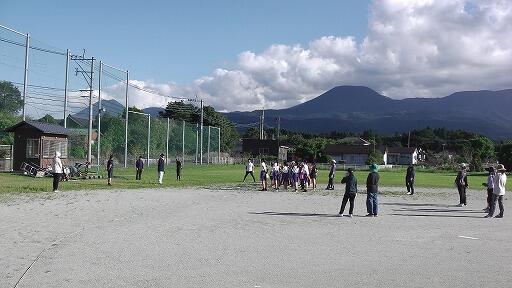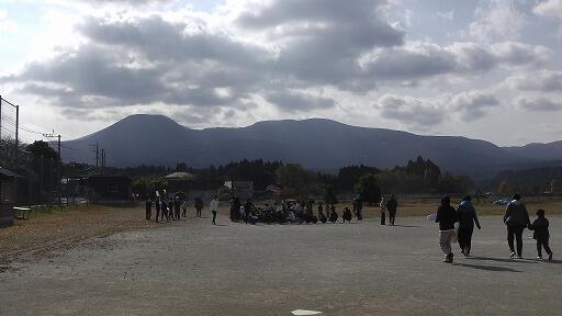 本校のロードレース大会は名前の通り、運動場から田んぼ道に出て霧島連山の麓を走るコースになっています。