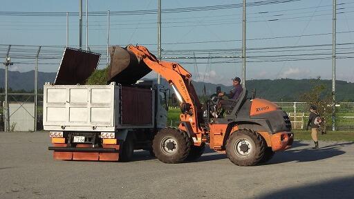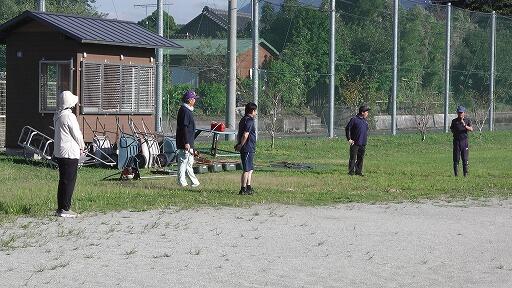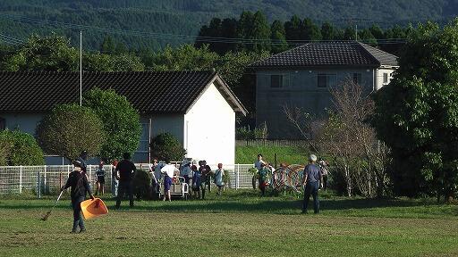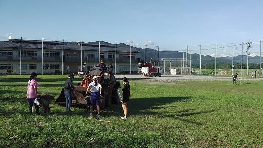 地域のお祭りでもある「上江フェスタ」も同じ会場で午後から行われるため、一部を片付けて準備しました。