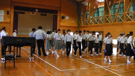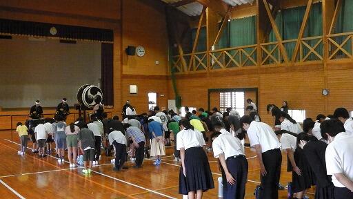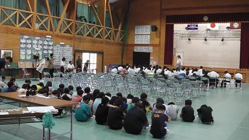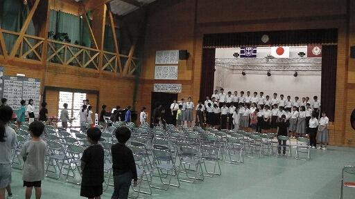 ・中学部が体育館後方に移動、小学部が前方に入ります。