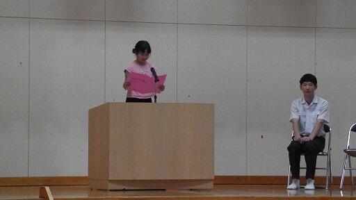 ・作文発表(「1学期をふりかえって」小学部2年・中学部2年代表)