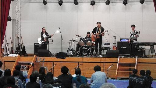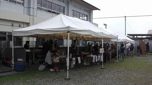 会場を上江小中学校・体育館としましたが、中庭に出店も出て、華やかな雰囲気でした。
