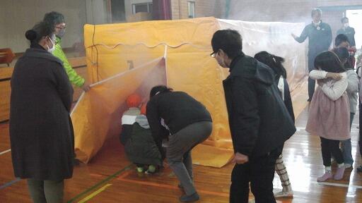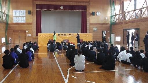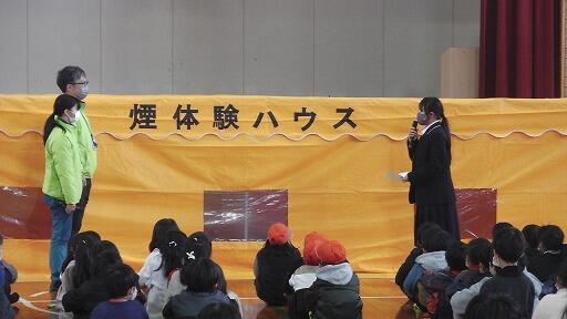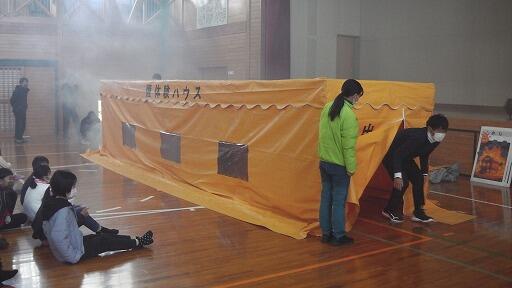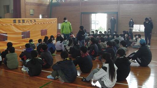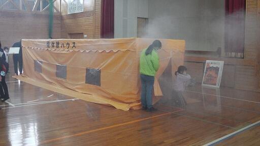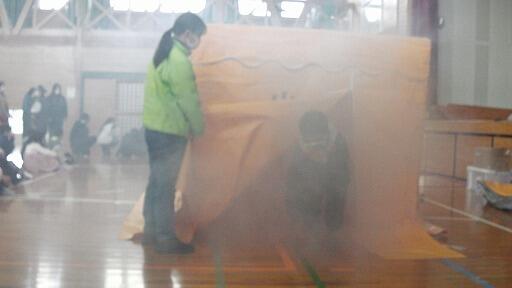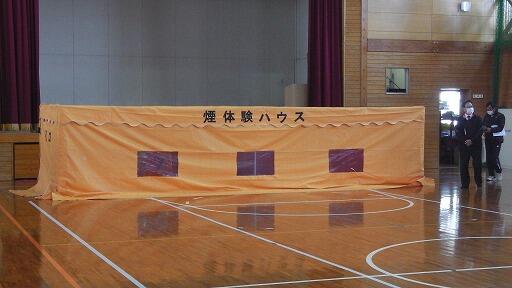 〇体育館に移動し、「煙体験ハウス」の説明をしていただきました。