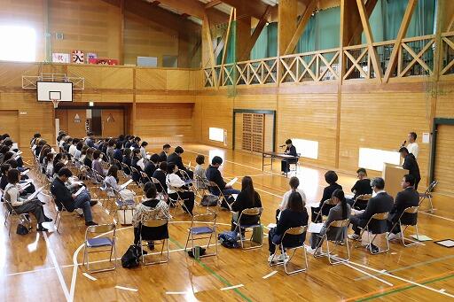 えびの市社会福祉協議会の方々が予想外に早くみえられ、中学部生徒会の生徒たちも緊張気味です…