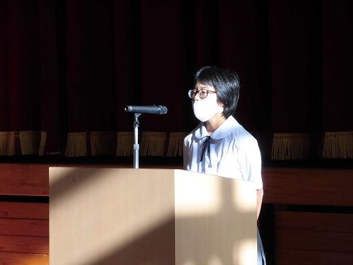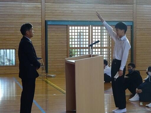 11月6日(金)に宮崎県中学校秋季体育大会の激励会がありました。新体操部を代表して堀添啓仁くんが選手宣誓を行いました。頑張ってきてください。