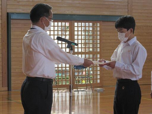 11月14日(月)に小林税務署長 吉田正嗣 様が来られて、校長室で租税作文表彰が行われました。3年 加治佐美琳さん(県租税作文銅賞) 東慶翔くん(小林税務署長賞) が表彰されました。また、ぜひいろいろなことにチャレンジしてください。