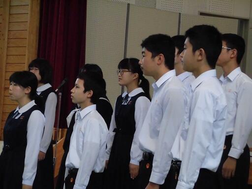 ②課題曲:全学年「時を越えて」指揮者:永前大夢くん 伴奏者:野口結愛さん