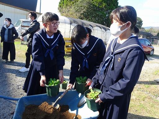 11月25日(水)昼休みに中学部全学年で「花いっぱい運動」の一貫で一人一鉢花を植えました。3月に卒業式で卒業生を送り、新入生を迎える花です。二階のベランダで毎日水をやり4月まで育てます。どんな花が咲くか、楽しみです。