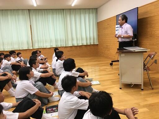 新型コロナのために延期になっていた2年立志式が行われました。令和2年度は、えびのエコミュージアムの今村正美様を講師にお願いしました。都城市立山田中学校を退職して行った登山旅行をテーマに、「「イママサの自転車山旅」~都道府県最高峰を登旅」という題で楽しいお話をしてくださいました。後半は、生徒1人1人の立志の決意の発表でした。自分のいろいろな夢や希望をかなえること、何か夢がありますよね。いつか、何かをやり遂げてみませんか。