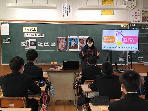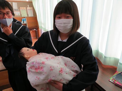 3年生性教育の授業が行われました。か母ちゃっ子クラブ 助産師 宮原様を講師にお願いして、赤ちゃんが無事生まれることの大変さを学びました。生徒の皆さん、あと10年後には、お父さんお母さんになっている