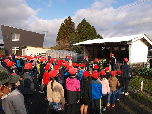 秋晴れの中、「はたらいている方の仕事の内容や工夫、及び、自分たちの町のことを知り、地域の方と仲良くなる」ことを目標に出発しました。