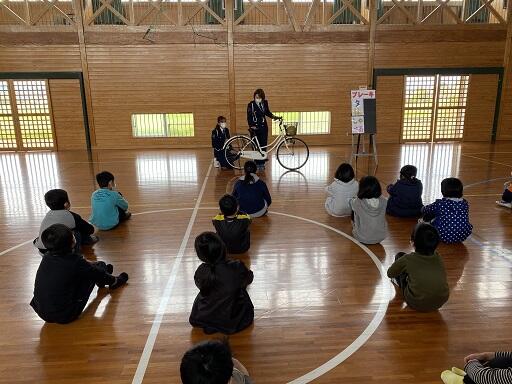 当日はあいにくの雨でしたので、交通指導を体育館で行っていただきました。
