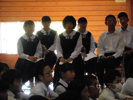 3時間近くの熱戦のあと、交流給食が行われました。いつまでも「20歳はたち」の高齢者のパワーに中学生は圧倒されました。笑。