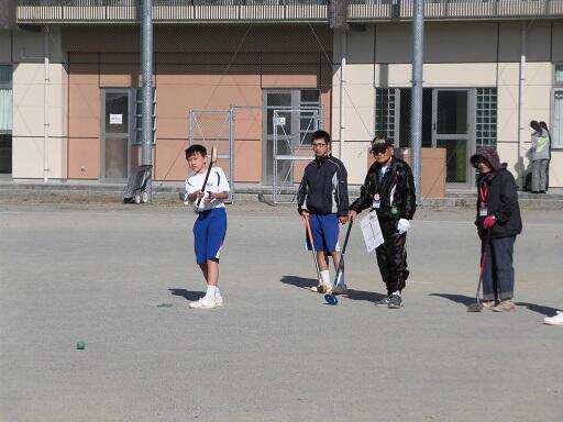 学校支援地域コーディネーター、中上江地区グランドゴルフクラブ・高齢者クラブのご協力をいただき、1年えびの学「福祉交流学習」グランドゴルフが行われました。