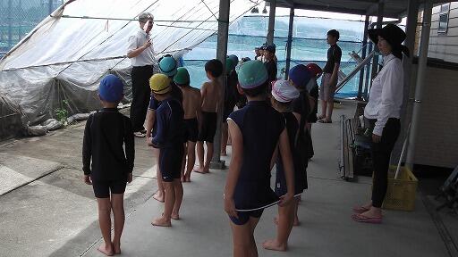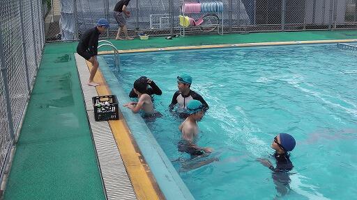 大雨の後の晴れ間となった6月18日(水)5校時に、小学部3・4年のプール開きがありました。