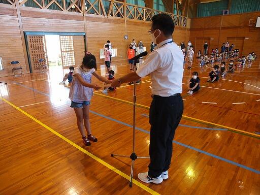 朝自習の時間に、小学部で全校朝会がありました。