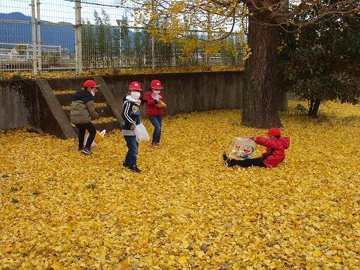 どんぐりを拾ったり、黄色いイチョウの葉を拾ったりしました。