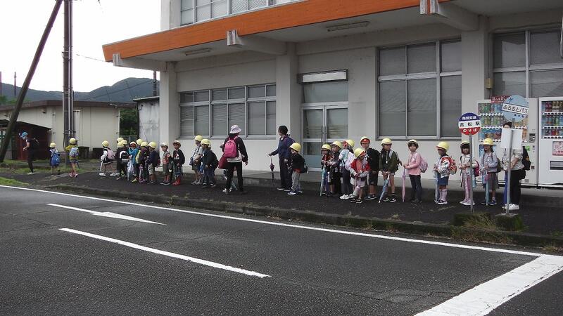 〇学校を出発、えびの上江駅へ移動