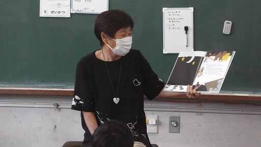 よく晴れ上がった9月7日(火)朝の時間に、読み聞かせがありました。