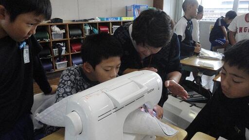 それまでのミシンの学習で、下糸をうまく作れなかったりミシンの下から出せなかったりした子どもたちでしたが、ボランティアの皆様の指導の下、少しずつミシン縫いや衣服の作製に慣れていき、ボランティアの皆様にお褒めの言葉もいただきました。