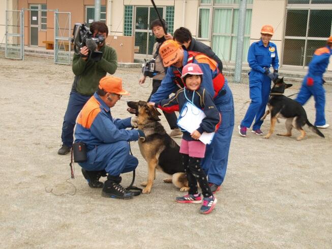 最後は4頭の災害救助犬とふれあう機会もありました。はじめは、救助犬が大きくて少し怖がっていましたが、慣れてくるとみんな楽しそうにふれあっていました。