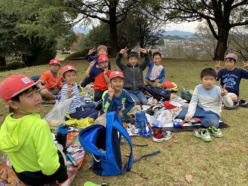 永山公園が公園改修のため使用できませんでしたので、本年度は小林の総合運動公園に行き、景色を楽しみながら落ち葉やどんぐりなどを拾いました。