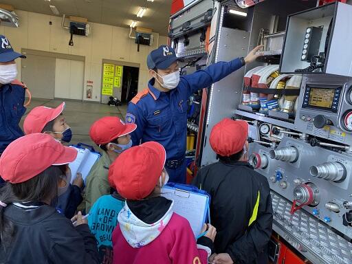 11月11日(水)に消防署・警察署に行ってきました。見学の目的は、「安全なくらしを守る人びとの仕事を知ること」でした。子ども達は、一生懸命に、話を聞き施設を見学していました。