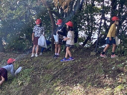 永山公園が公園改修のため使用できませんでしたので、本年度は小林の総合運動公園に行き、景色を楽しみながら落ち葉やどんぐりなどを拾いました。