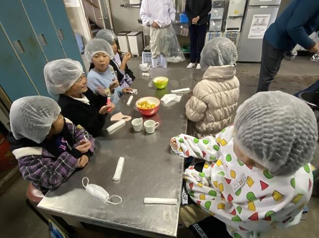工場の方のご厚意で、栗の試食もさせていただきました。栗を苦手としている子が多数いましたが、おいしいと言って全員がたくさん食べていました。