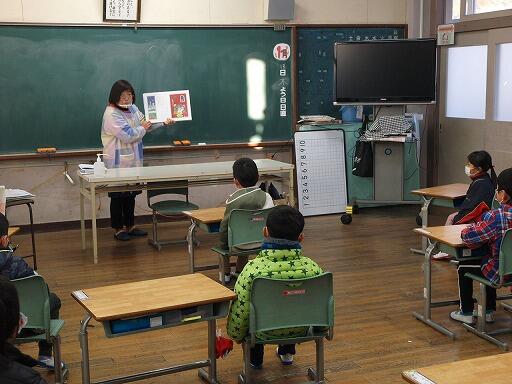 1月13日(木)の「朝の活動」は、小学部1・2年生が読み聞かせでした。