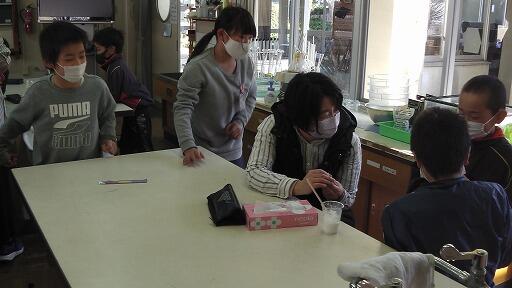 ちょうど作っていたとき、3年生がクラブ見学に来ました。