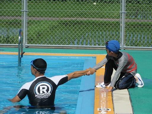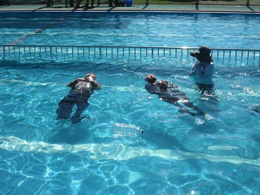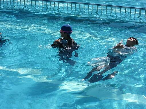 着衣泳とは、もし、普段の格好で海や川に落ちた時、命を守るためにする泳ぎ方のことです。