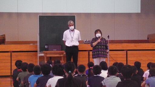 7月に入ったので、5日(火)朝の活動の時間に、全校朝会がありました。