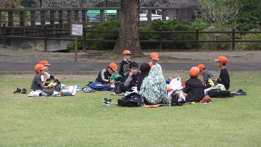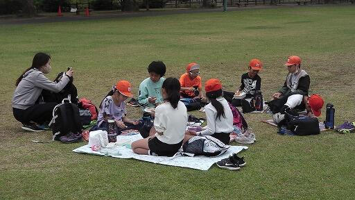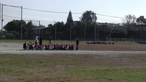 終わったら、歩きながら呼吸を整えて集まり、整理運動です。