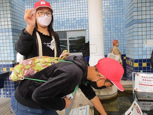 次は班別自主研修で、かごしま水族館をスタートし、ゴールの黎明館をめざしました。