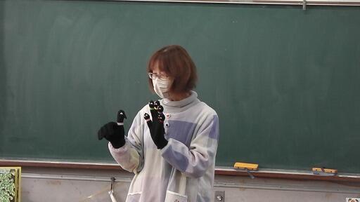 最後に、手ぶくろの指人形を使ったかんたんな劇を見せていただきました。
