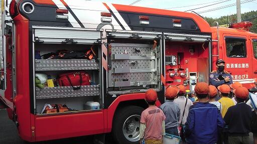 「タンク車」や「ポンプ車」を見せていただきました。