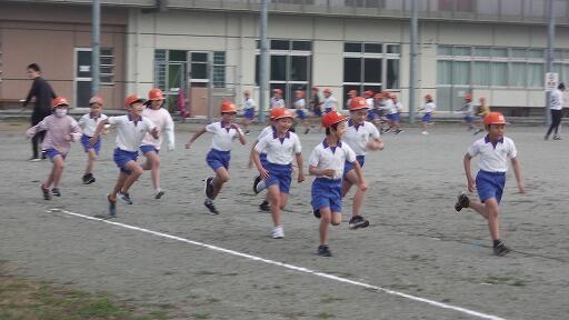ドキドキしながら、運動場へ向かいます。
