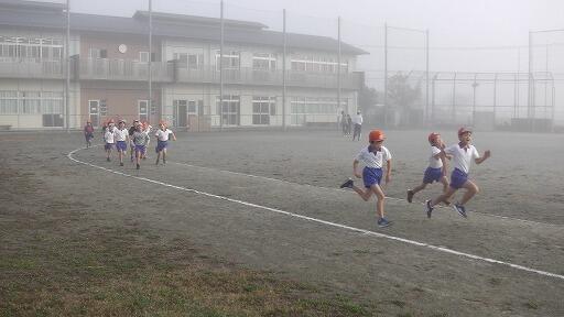 雨上がりの週明け11月14日(月)「朝の活動」の時間に、持久走練習②がありました。