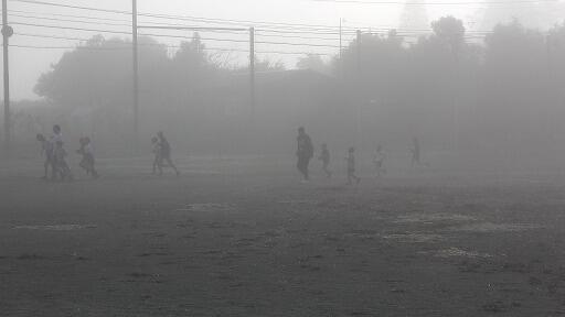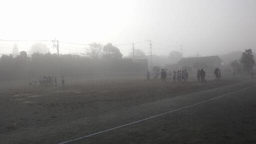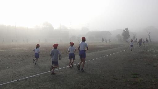 朝霧の中の長距離走練習