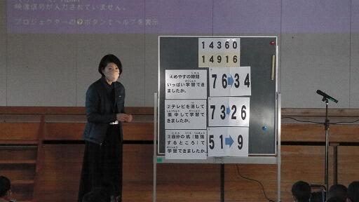 学習関係では、年間読書冊数が昨年度を超えたことや、忘れ物などが減ってきたことなどを話されました。