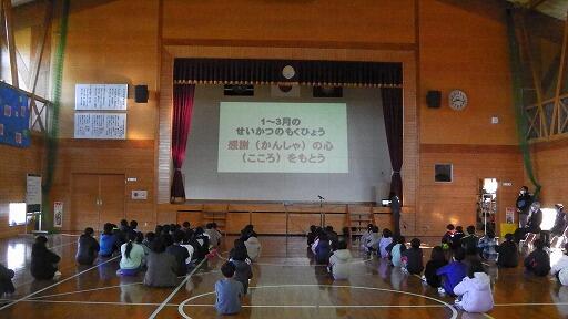 3月2日(木)朝の活動の時間に、全校朝会がありました。