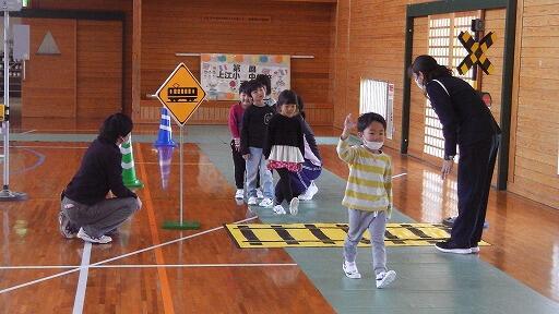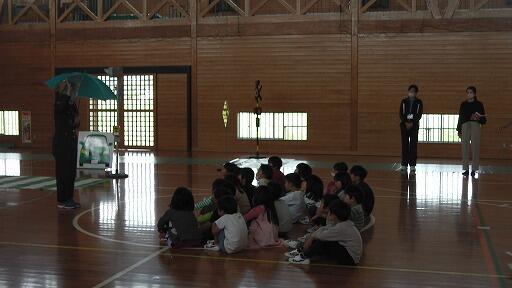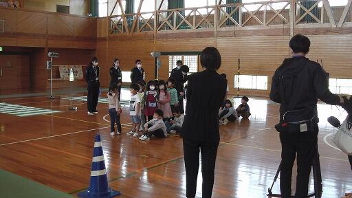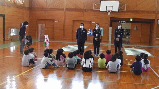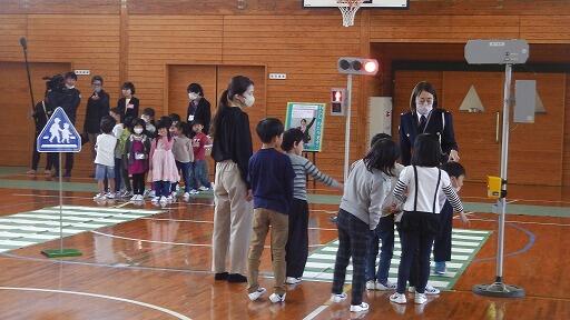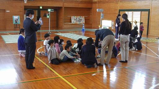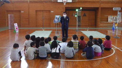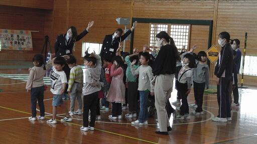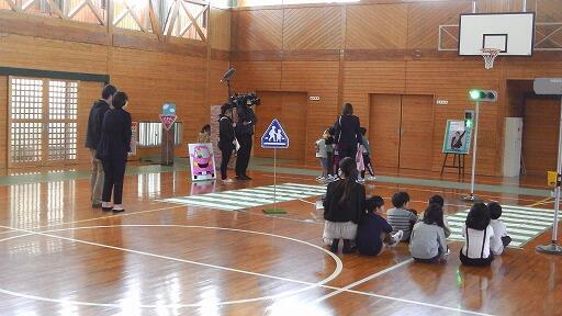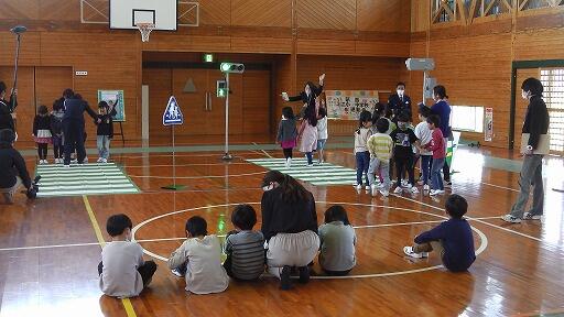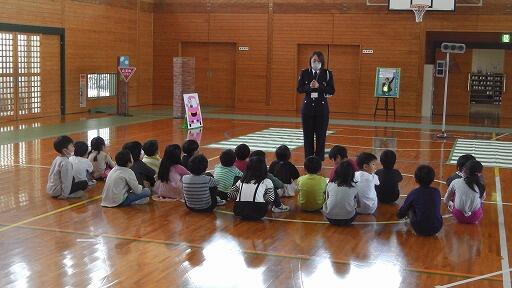 お天気が回復した4月27日(木)3校時に、体育館で、小学部1・2年生の交通安全教室がありました。