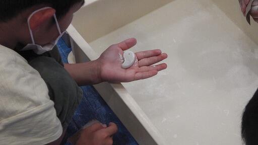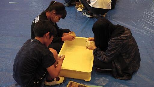 それから、多目的室へ移動し、勾玉づくりをしました。