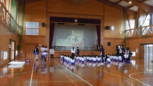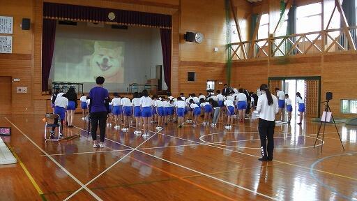 以前は「朝の活動の時間」で‘全校朝会’と言っていたのですが、校時程の変更で朝の活動の時間がなくなり、「全校集会」と言っています。