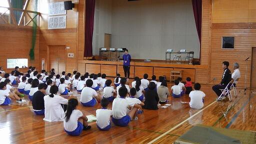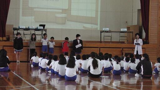 台風2号が静かに近付く6月1日(木)、小学部の全校集会がありました。