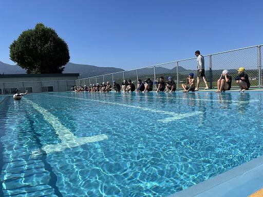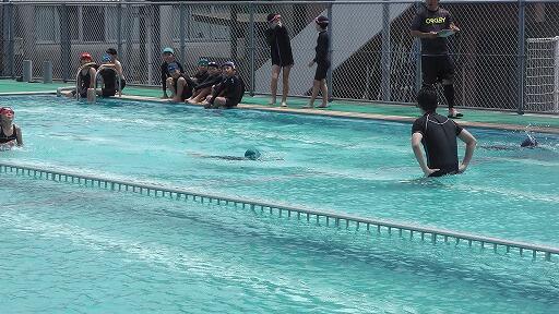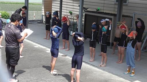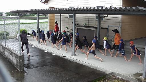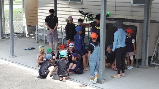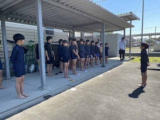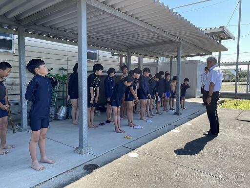 19日(月)2校時…5・6年生のプール開きで、最高気温34℃の真夏日でした!