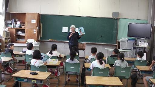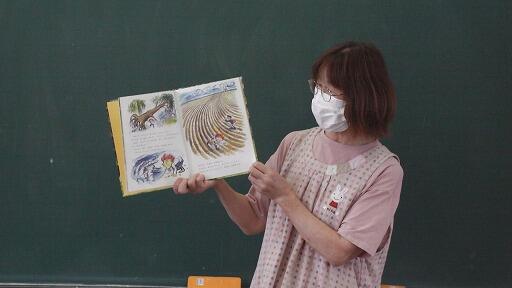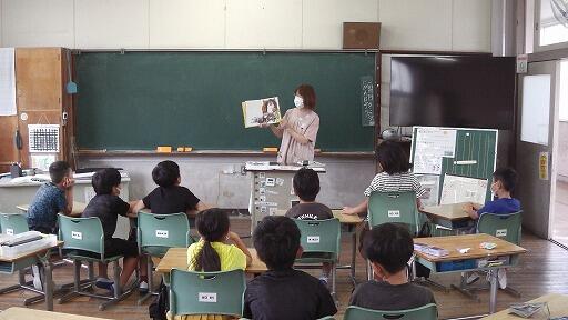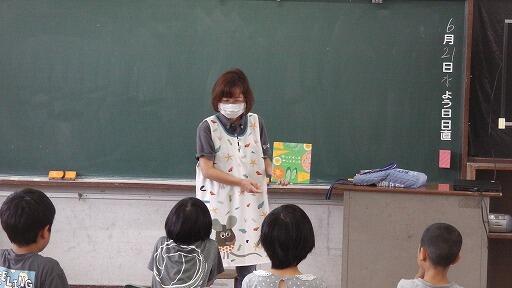 朝から日差しが強かった6月22日(木)朝、1~4年生に「読み聞かせ」が行われました。