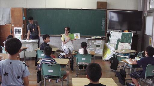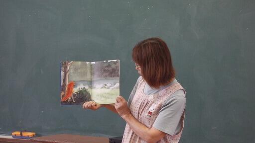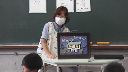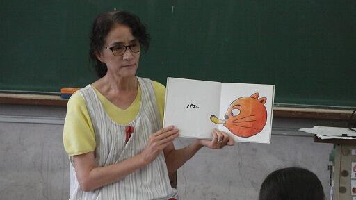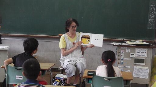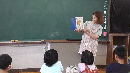 雨上がりの7月13日(木)朝の活動の時間に、読み聞かせがありました。